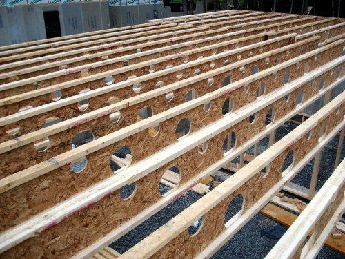 La section ajourée, qui est localisée au centre de la portée, est dotée de diagonales en bois (ou « V » de bois), gage d’une grande robustesse. Elle permet le passage des conduits et des tuyaux sans difficulté. Par ailleurs, il est possible d’ajuster les poutrelles à la longueur voulue en coupant les extrémités jusqu’à 2 pieds sans risque d’affaiblir la poutrelle. Ce système de plancher vous assure l’économie et la performance, et ce, sans compromis.